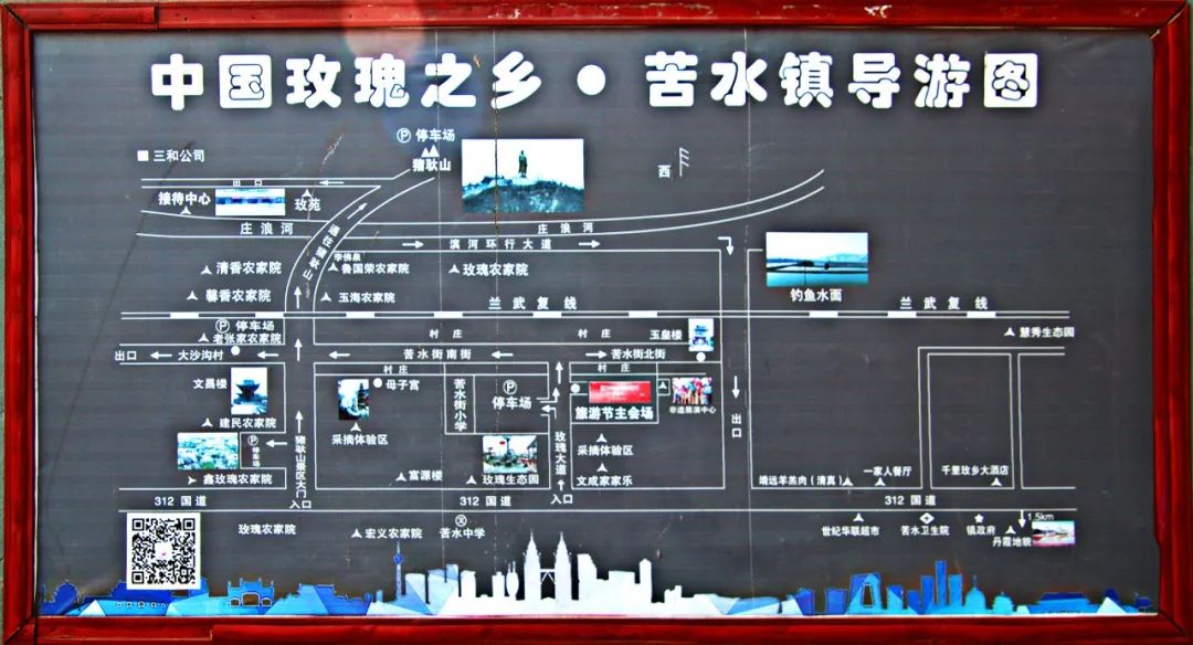如今苦水街的建设紧跟日新月异的社会变迁。苦水利用地理位置优势和苦水玫瑰特色资源优势,深入挖掘历史文化遗产,有中国玫瑰之乡美誉,苦水的旅游和经济蒸蒸日上。1984年,兰州市评选十处新景观,苦水玫瑰榜上有名,获得“玫海花香”的美誉。