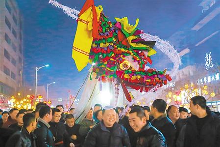 西和县传统“老龙”社火耍起来。新甘肃·甘肃日报通讯员 张春年