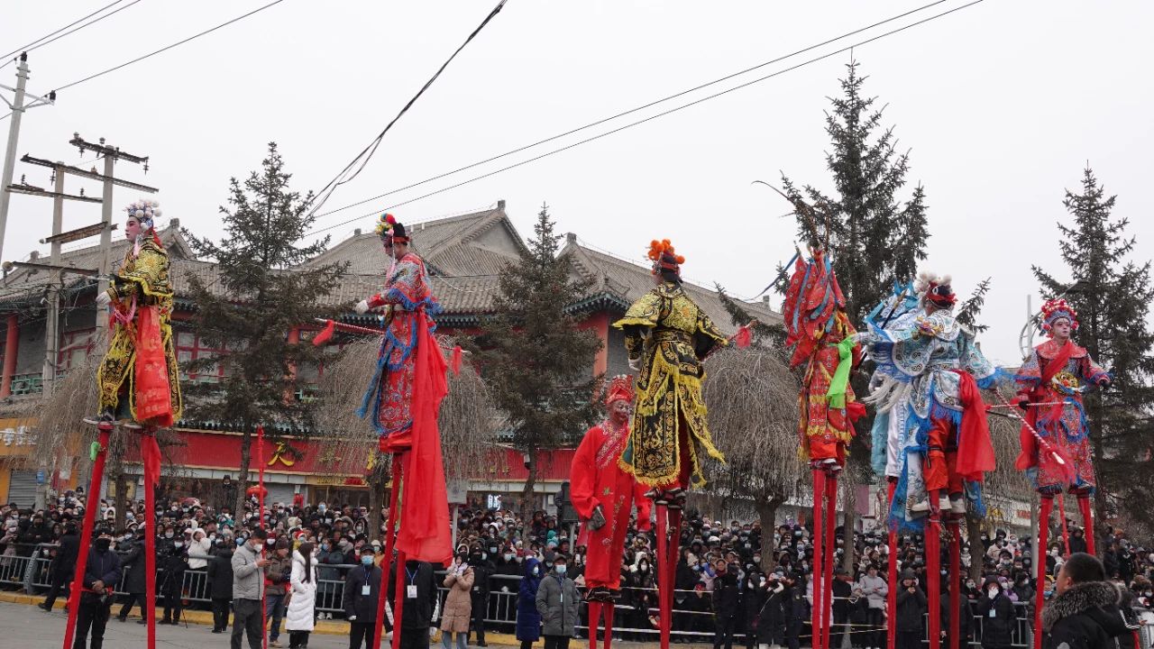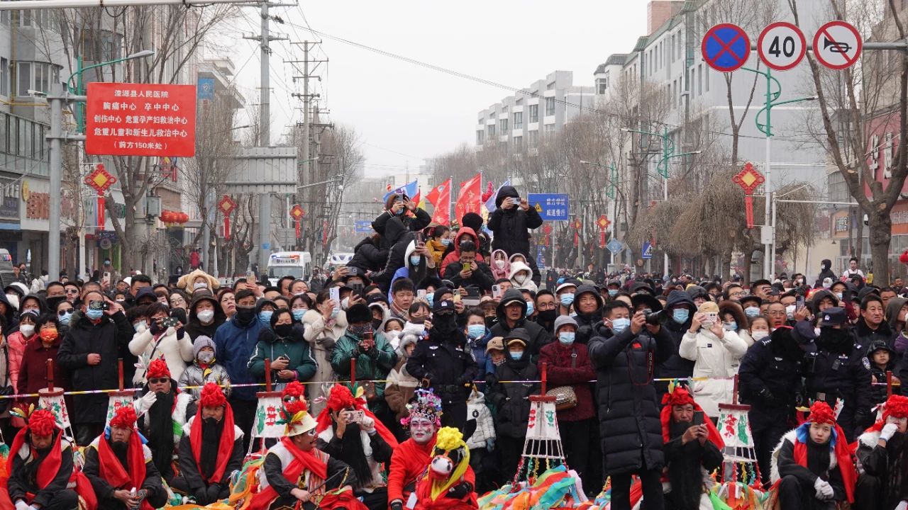 活动开始,社火队伍从各村广场出发,一路沿东大街、大什字、西大街、建设东西路等主要街道巡游表演。只见腰鼓、秧歌、红绸队一字排开,火红的秧歌队踩着十字步,整齐划一地翩翩起舞;锣鼓、旱船、大头娃娃为整场活动增添了不少色彩。表演者们用自己的方式表达着对节日的祝福,前来观看的群众纷纷举起手机拍照,留下精彩的瞬间。