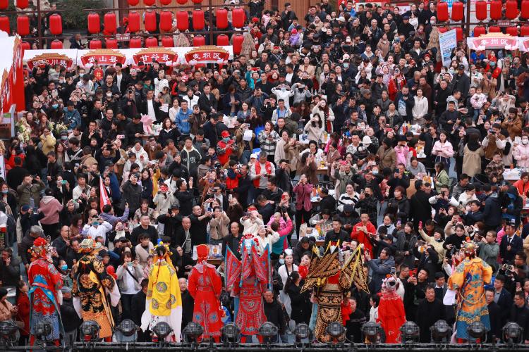 今年3月16日,为了让前来吃麻辣烫的外地游客尽兴而归,甘肃天水“宠粉”放大招,大街上锣鼓阵阵,高跷社火重新上街,与外地游客互动。