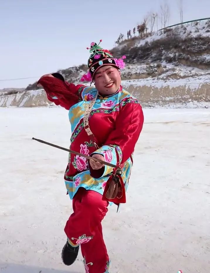 “杨老二”在社火表演中的角色扮演(视频截图)