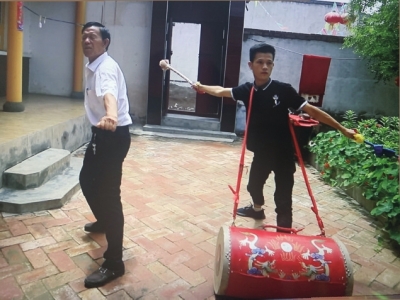一说起缪正发,生活在苦水镇的人应该是无人不知无人不晓的,每当逢年过节,镇上开始闹社火、耍龙灯、吼秦腔的时候,人们总能看见他乐此不疲的身影。“我从小就喜欢各种民俗文化活动,每年村上有耍社火的表演,我都怀着激动的心情去看,那是童年记忆中不可多得的乐趣……”随着年龄的增长,缪正发从看太平鼓的人变成了表演太平鼓的人,在震耳欲聋的鼓声中,他挥洒着自己的青春和汗水。“我的哥哥比我大22岁,是他手把手的教了我太平鼓的打法,我们那个年代的人做事都很执著,认定的事情就会一辈子做下去、做好……”缪正发说。那时农村的文娱活动也比较少,猫了一个冬天的村民们都非常渴望能在“二月二”热闹一下。所以为了这个一年一度的盛宴,作为鼓手,我们都会全力以赴。