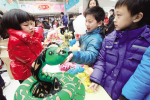 天津北方网讯:“棒棒糖,一块钱一颗???俨宦蚓兔挥??hellip;…”3名六七岁的女孩面前的桌子上摆满了各式各样的棒棒糖,卖力的吆喝声吸引了不少来逛“庙会”的家长和孩子。这是昨天在青少年活动中心举行的第四届“娃娃庙会”中的一个场景。由市文明办、团市委,青少年活动中心与天津市非物质文化遗产保护中心共同承办的本市最大规模的迎春“娃娃庙会”昨天在天津青少年活动中心开锣,庙会将持续至今天。