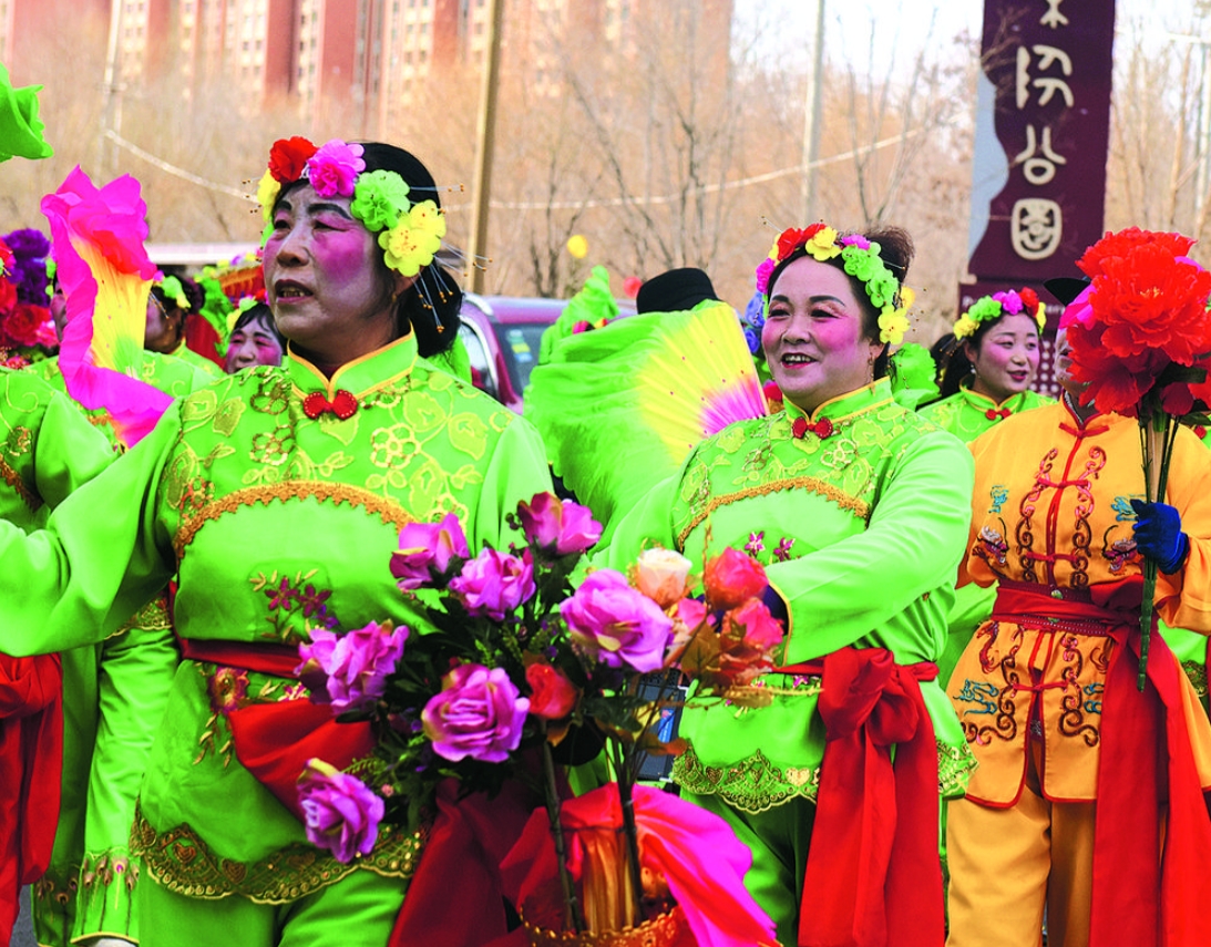 “年都过了一半了,这两天就等着看社火表演呢!从楼上窗户看不过瘾,现场看更热闹。”住在附近小区的李兰英听到鼓声响,赶忙抬着小凳子,陪母亲下楼看社火。