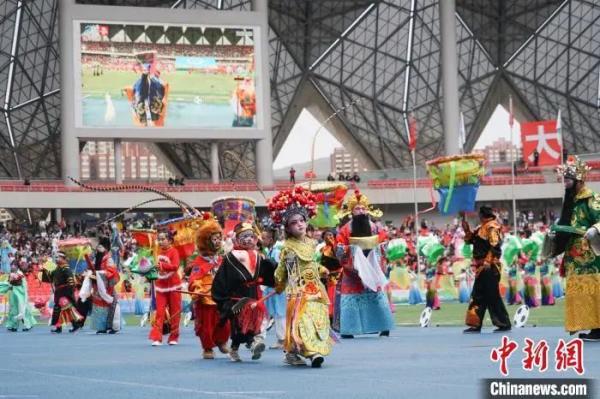 图为开幕式现场进行鲁沙尔高跷表演。 马铭言 摄