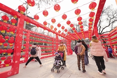 ▲2月4日,市民、游客在街头游玩赏灯。 王晓峰 实习生 王小珂 摄