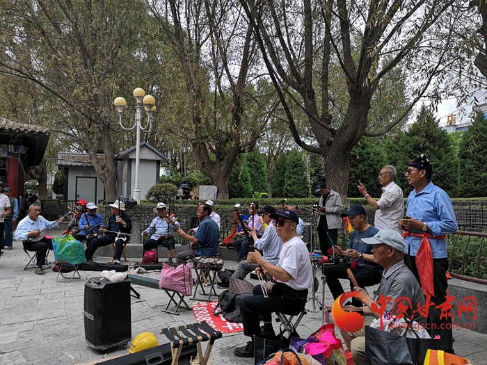 每天下午两点到五点,如果你漫步在张掖钟鼓楼北广场,便会遇见一场花甲老人的甘州小调演奏会。他们平均年龄在67岁,共12人,拉二胡的居多,拉板胡和三弦的各一人。