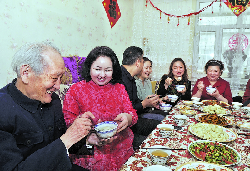 2月14日,乌鲁木齐市天山区二道桥片区管委会福寿巷社区“民族团结模范庭院”居民、优秀共产党员、民族团结模范卡力比努尔·乌休(右一)邀请结对亲戚及邻居到家里一起吃元宵。大家猜灯谜、品美食,喜迎元宵佳节。》》》详情