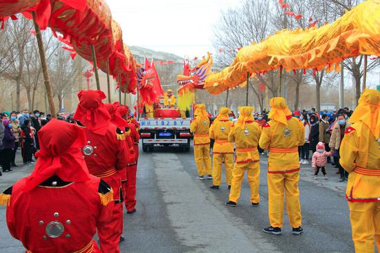 沿街巡游活动结束后,该团在承德广场上举办了社火汇演活动。伴随着欢快的锣鼓声乐,身着盛装的社火队员们个个精神抖擞,踏着旋律尽情表演,用优美的舞姿抒发幸福生活的喜悦和对新年美好生活的憧憬。