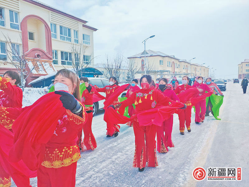 新疆网讯(全媒体记者郭军鸽)喧天的锣鼓声中,鲜艳的绸巾随着欢快的鼓点挥舞起来。大年初一,乌鲁木齐县水西沟镇东湾村热闹的社火表演,让浓浓年味扑面而来。