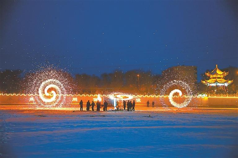 游华美灯阵,促文旅融合。永昌举办20多场非遗体验、文艺演出,气势恢宏的灯阵和文化惠民演出吸引游客和周边居民前来打卡。