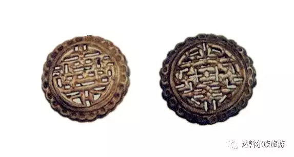头饰上的金属镂空饰件,为“卐、禧”纹