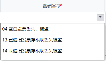 5.点击【新增】,在新增的一行里填写相关发票信息,其中挂失类型可以选择 “丢失”、“被盗”、“损毁”,缴销类型可以选择“空白发票丢失、被盗”、“已验旧发票存根联丢失被盗”、“未验旧发票存根联丢失被盗”。据实填写表格完后,点击【下一步】,进入“上传附报资料”界面。