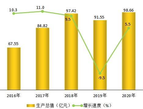 初步核算,2020年全县实现生产总值98.66亿元,按可比价计算,比上年增长5.5%。其中,第一产业21.65亿元,增长3.7%;第二产业39.43亿元,增长7.9%;第三产业37.59亿元,增长4.0%。三次产业比重为21.9:40.0:38.1。