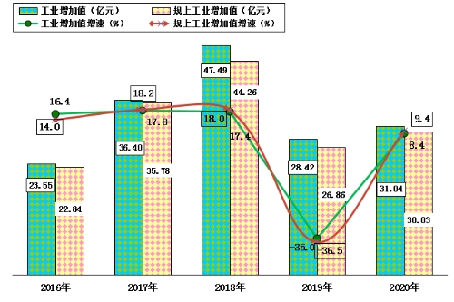 2020年战略性新兴产业企业10户,与2019年相比净增2户,占规上工业总数的41.7%。其中新材料产业6户,新能源产业2户,生物产业2户。战略性新兴产业企业产值较上年增长7.5%,占规上工业总产值的10.2%。