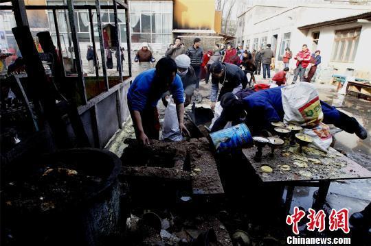 图为大佛寺僧侣正在收集被烧过的酥油灯。胡贵龙 摄 中新网西宁2月14日电 (胡贵龙)14日15时20分,地处西宁市城中区校场街的藏传佛教寺院大佛寺院内一间摆放酥油灯的铁皮房意外失火。经历整个火灾过程的藏族民众拉果告诉记者,事发前,一儿童将点燃的酥油灯放在了一纸箱旁后不慎失火。