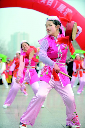 女孩们表演的鼓子秧歌刚劲中带着柔美。记者 陈文进 摄
