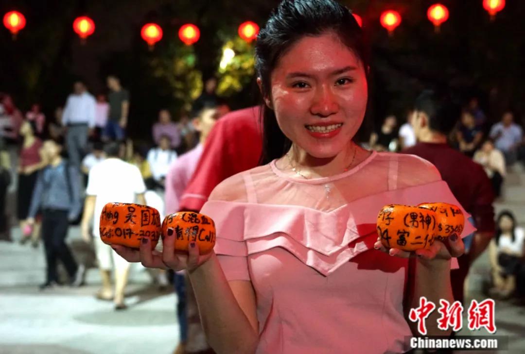 2019年2月,马来西亚雪兰莪八打灵再也举行元宵节“抛柑”活动。“抛柑”是马来西亚华人元宵节特有的民间习俗,传统为女性在柑橘上写下联系方式抛柑入水,男性打捞。图为马来西亚女生展示自己和朋友写在柑橘上的心愿。中新社记者 陈悦 摄