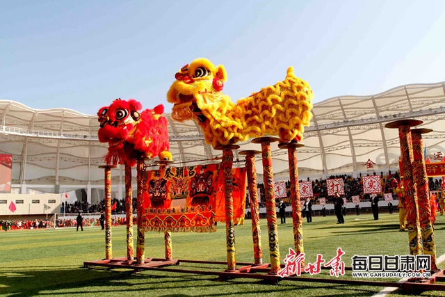 欢腾的舞狮、热情的巴当舞、激昂的太平鼓……活动现场,来自定西市安定区、临洮、陇西、漳县等县区的11支社火队伍,用饱满的热情和优美的舞姿,为在场及在线观看的群众呈上一场“文化盛宴”。