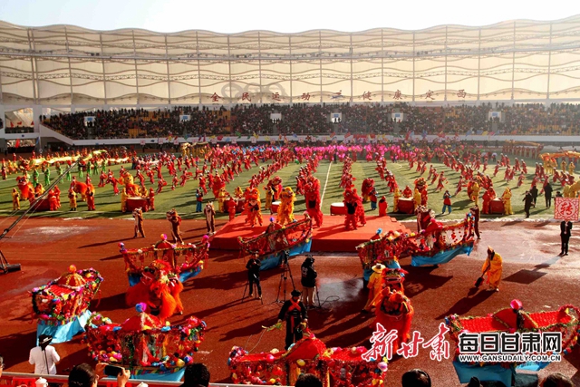 安定区?f口镇社火队带来太平鼓表演,鼓声铮铮,参演者边打边舞,舞步随鼓点而变,激昂而雄壮;安定区高峰乡社火队带来小曲《十对花》,声声唱出群众对美好生活的憧憬;渭源县社火队带来的社火表演“河州大闪”,是县级非物质文化遗产,敲锣打鼓、载歌载舞的表演中,沉淀着千百年来当地人们的文化生活和风俗习惯……