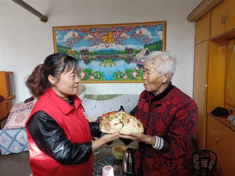 皋兰县砂岗村弘扬孝善文化,干部为村里老人送月饼 安娜 摄