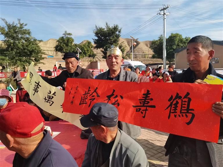 皋兰县“敬老孝老·爱在重阳”活动中为过生日老人送书法作品 安 娜 摄