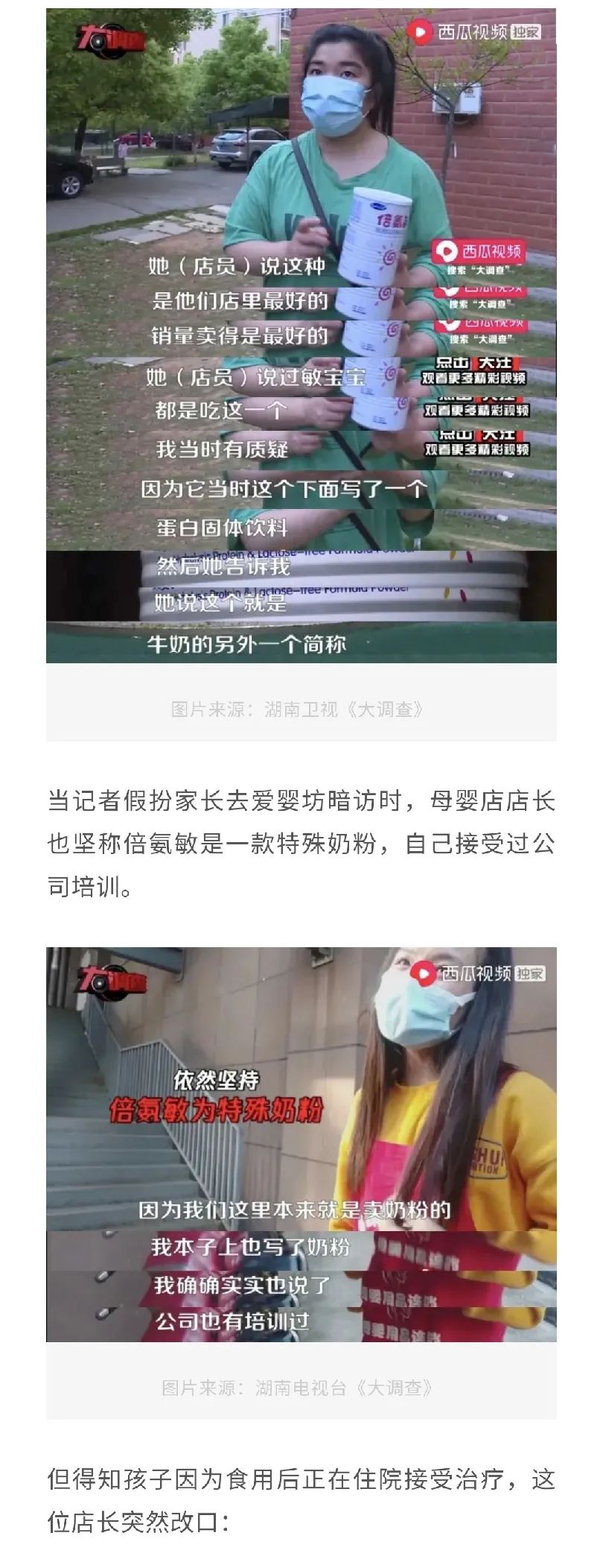 在医生们的仔细询问下才知道,这些孩子都有一个共同点:他们都曾在同一家「爱婴坊母婴店」,给孩子购买、喂食了同一款「特医奶粉」—— 倍氨敏。