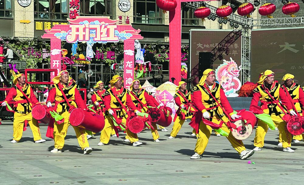 “咚咚锵!咚咚锵!咚咚锵……”2月5日,西宁市大通回族土族自治县天麒花儿步行街文化广场传来阵阵锣鼓声。循着声音前去,一场盛大的乡村春晚正在精彩进行。