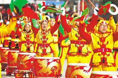 威风锣鼓震八方。 新甘肃·甘肃日报记者 高 樯