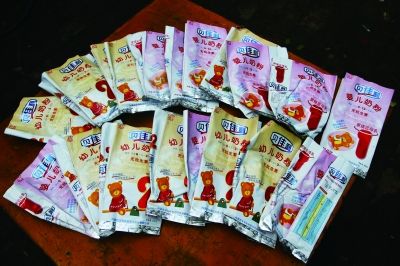 俩家庭均留有劣质奶粉物证