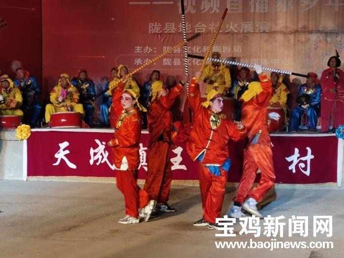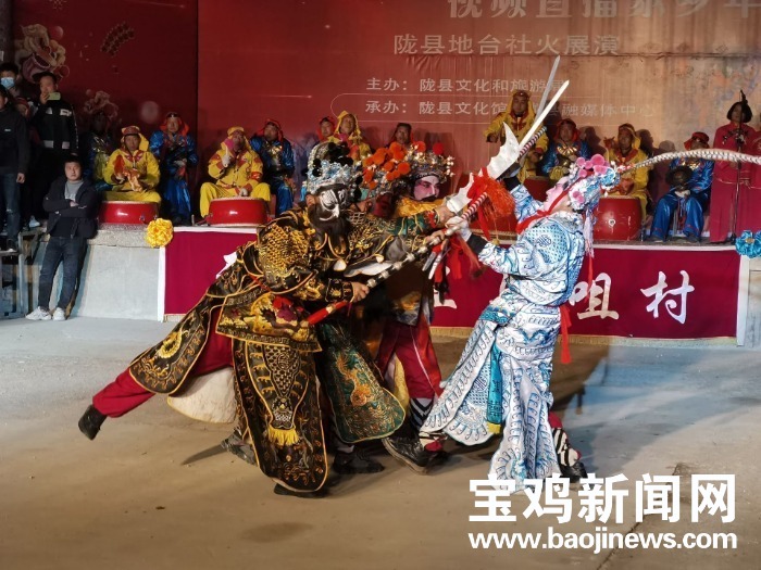 宝鸡新闻网讯 2月9日晚,农历正月初九,民间社火之乡的陇县网络直播了天成镇王马咀村地台社火,《关公刀》《三英战吕布》《黑虎搬三宵》等经典社火剧目接连上演,让全国各地网友足不出户大饱眼福。据不完全统计,当晚共有600多万网友目睹了陇州社火的独特魅力,感受到浓浓的年俗。