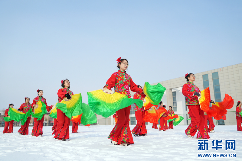 在甘肃省金昌市,新华路街道花漾社火队的队员正在进行社火排练。新华网发(张宏斌 摄)