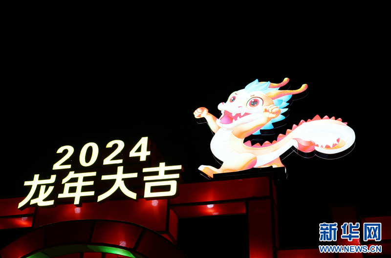 这是在甘肃省张掖市城区里布置的龙年主题彩灯。新华网发(成林 摄)