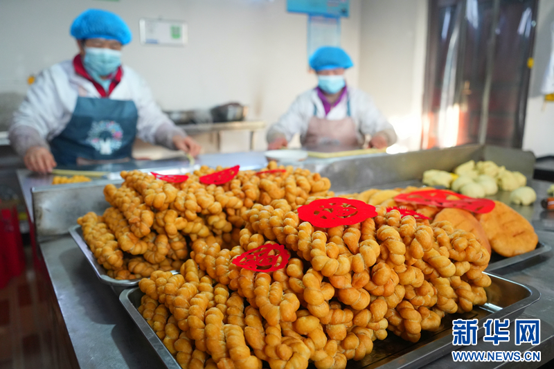甘肃省酒泉市金塔县金塔镇中杰村的村民们正加紧制作麻花、烧壳子等年馍,供应节日市场。新华网发(曹红祖 摄)