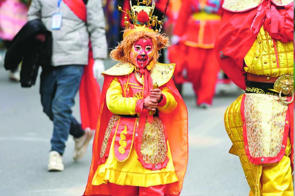 2月19日,在青海省西宁市,演员在社火巡游活动中表演。新华社