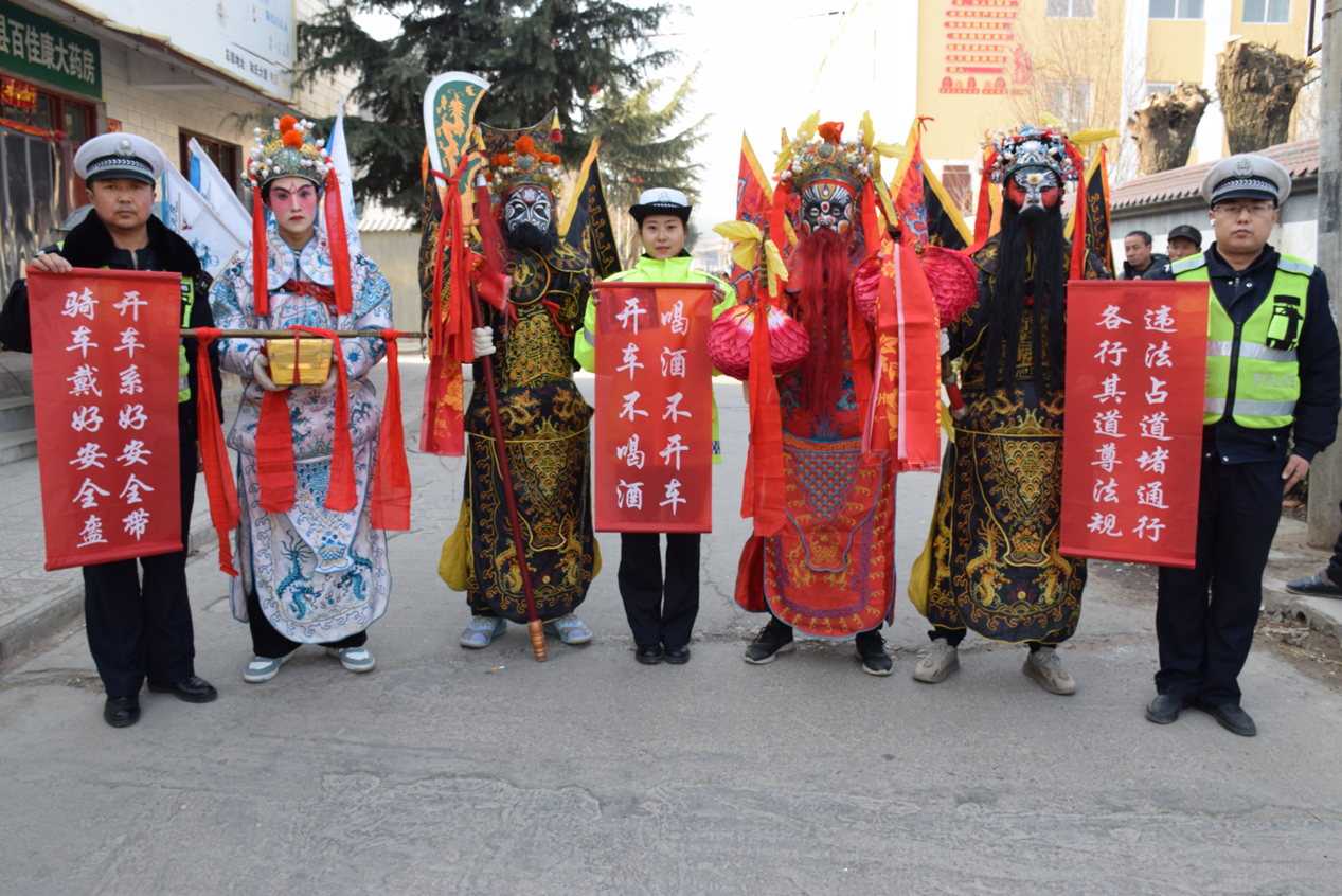 1月31日,陕西省宝鸡市陇县交警联合“陇州社火”,在展示陇州传统文化的同时,抓住时机、创新方式,进行交通安全宣传。