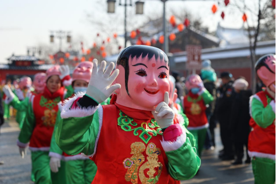 作为历史文化名城,大同依然保留“闹红火”的传统节目。在大同古城和阳门,表演者身着节日盛装,以花车巡游、社火表演的形式向和阳街、清远街、清远门前行。大头娃娃可爱活泼,跑驴儿表演喜庆红火,秧歌表演舞出了热闹、扭出了欢乐。华严寺、纯阳宫、关帝庙等处特色文艺展演精彩呈现,市民们在此品年俗、看演出。