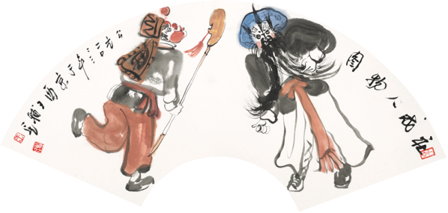 社戏人物图║扇面║纸本设色
