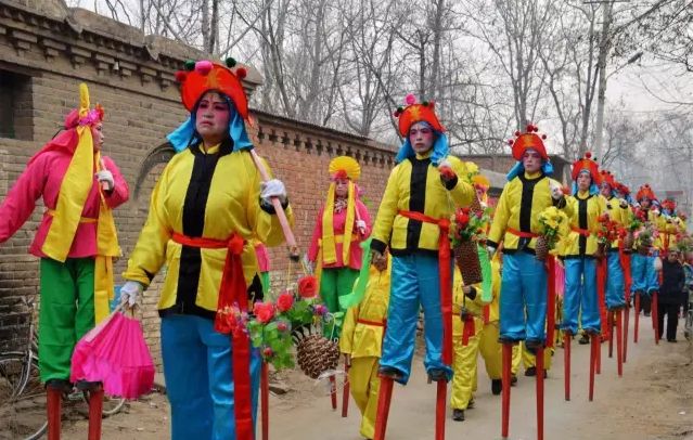 高跷也叫“高跷秧歌”,是汉族民俗舞蹈的一种形式,艺人们腿绑高跷,在音乐的伴奏下翩翩起舞,舞姿以雄健、惊险为主。