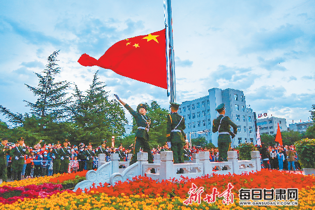 10月1日,平凉市人民广场举行升国旗仪式。 新甘肃·甘肃日报通讯员 王治国