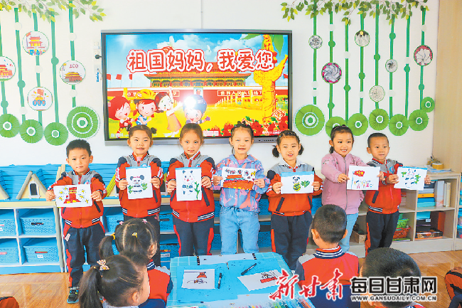 临泽县第一幼儿园开展“童心颂祖国、欢乐迎国庆”活动,表达对祖国的美好祝愿,喜迎国庆节。 新甘肃·甘肃日报通讯员 刘自新
