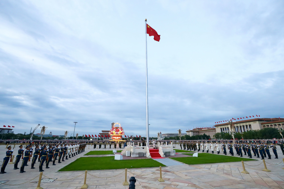 中国日报10月1日北京电(记者 朱兴鑫) 2021年10月1日晨,北京天安门广场举行国庆升国旗仪式,迎接中华人民共和国成立72周年。来自全国各地的群众齐聚天安门广场,共同见证着五星红旗冉冉升起的庄严时刻。