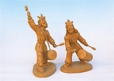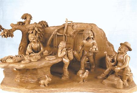 甘肃省工艺美术大师常天平以惟妙惟肖的泥塑作品,再现了河州秧歌及日常生活场景,散发着浓浓的乡土气息。