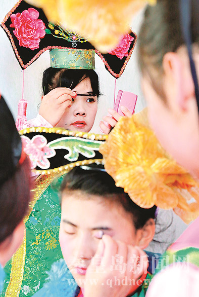 女扮男装的13岁姑娘鲍佳丽自小就学“寸子”秧歌。