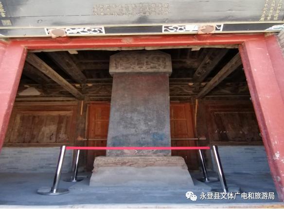 红城感恩寺碑亭修建于明嘉靖四年(1525年)平面呈正方形,面阔三间,进深一间,正面、背面均安置实踏门,青砖墙体,檐下施单翘单昂三踩斗拱,歇山正脊青铜板瓦顶。