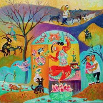 山东省(苍山)的《绣荷包》,音乐质朴,直率坦诚,和山东人性格一脉相承。“姐儿房中绣荷包手拿着钢针,轻上描儿描,显你手段高,上绣星辰共日月,下绣上就凉船,水把上儿漂......”。歌曲将情感寄于物中,真诚的表达了姑娘对纯真爱情的向往,有心与多情,爱情要共日月,船与水不分离,星、辰、日、月、船、水,象征着圣洁与永恒。