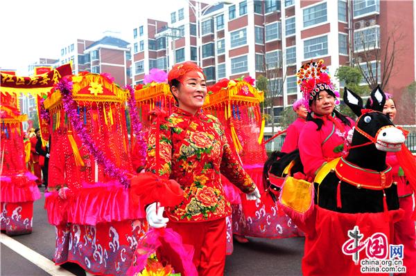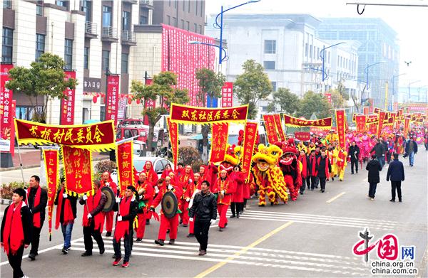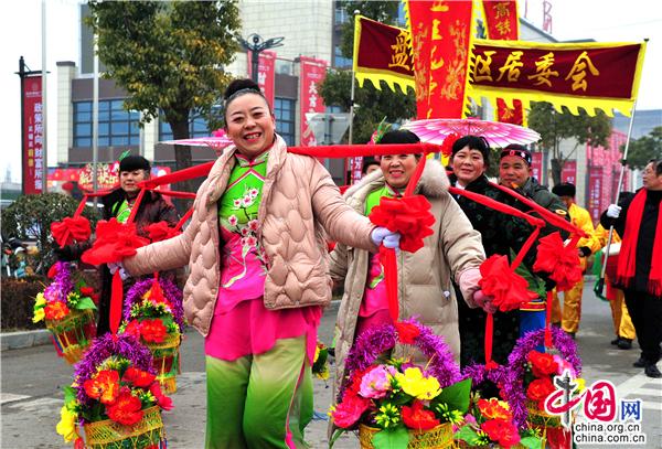 江苏睢宁年味足 双沟镇民俗汇演高跷舞狮划旱船
