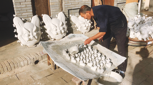 现在,六营村70%的农户从事泥塑生产。泥塑生产也成为村民增收的重要途径,2017年实现产值5200万元。