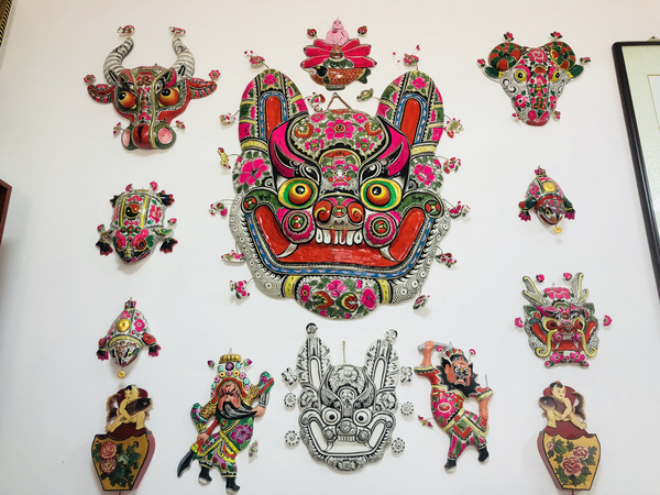 胡新明工作室的墙上挂满了他创新塑造的泥塑形象