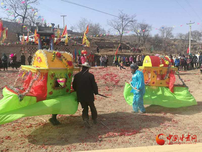 狗护千祥追日去,猪拥万福驾云来。2019年春节期间,甘肃通渭县鸡川镇水莲村处处张灯结彩,锣鼓喧天;乡村舞台上秦腔歌舞,好戏连台,热闹非凡,为新春增添了热闹欢乐的气氛。勤劳朴实的村民满怀丰收的喜悦,腾龙舞狮贺盛世,欢天喜地过大年。